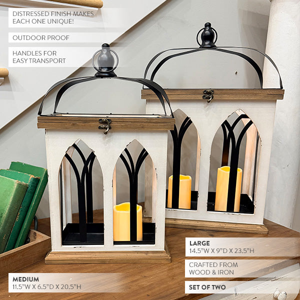 Here's the thing about value: we've seen nearly identical cathedral window lantern sets selling for $95-120 at the big-box stores and boutique retailers. You're getting both sizes, that hand-distressed finish that makes each set unique, and outdoor-proof construction—all at a price that actually makes sense.