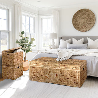 Woot Woot! We couldn't wait for this morning because we were giddy with excitement to bring you these Woven Hyacinth Storage Chests! These give you a farmhouse feel while adding natural elements to your home... and lots of storage options!