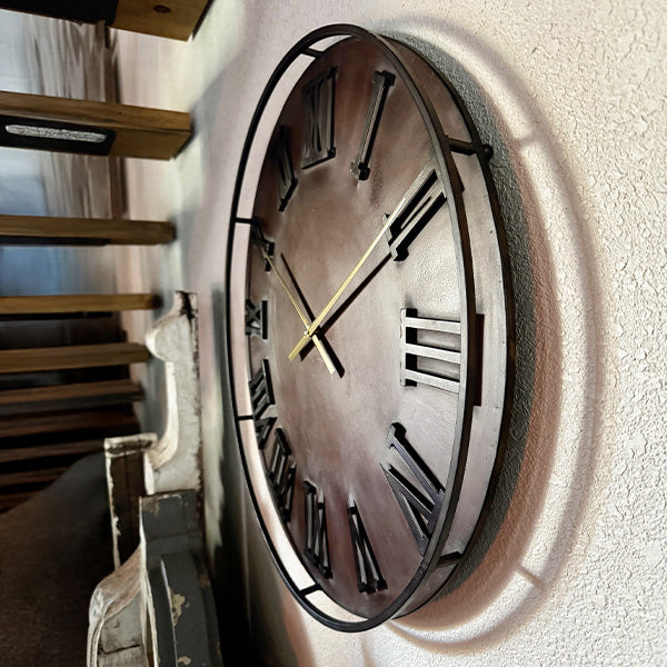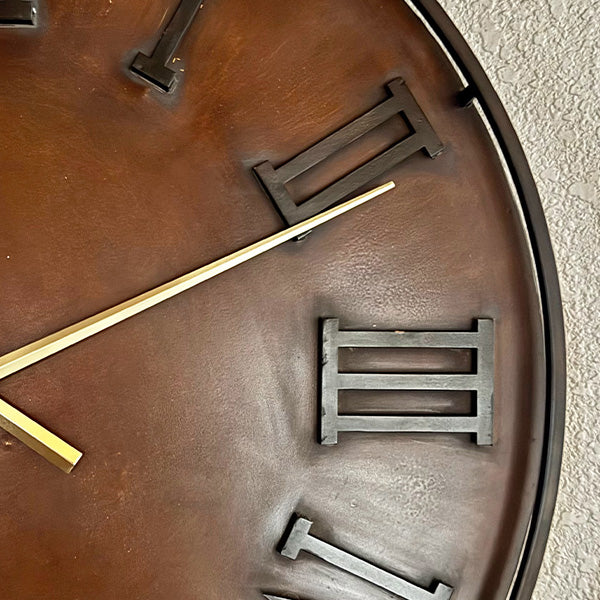 24 Inch Rustic Metal Wall Clock | Bronze Copper Finish with Roman Numerals & Gold Hands