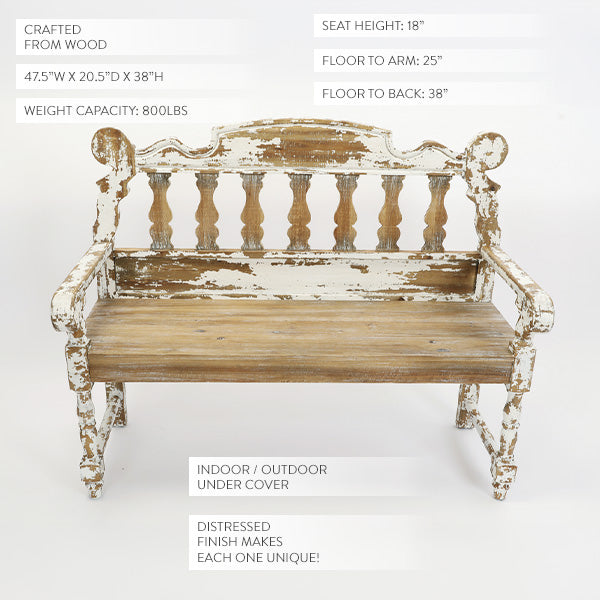 • Distressed finish makes every bench completely unique