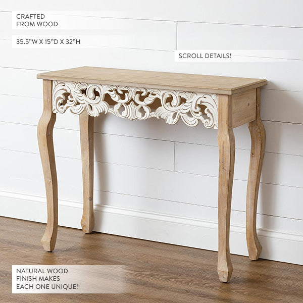 There's something about a handcrafted piece that just hits different. The grain patterns shift and swirl across the top—no two tables will ever look the same. But what really makes this one special? Those scroll details carved into the apron. They're the kind of ornate work you'd expect on a $1,200 boutique piece, not something this accessibly priced.