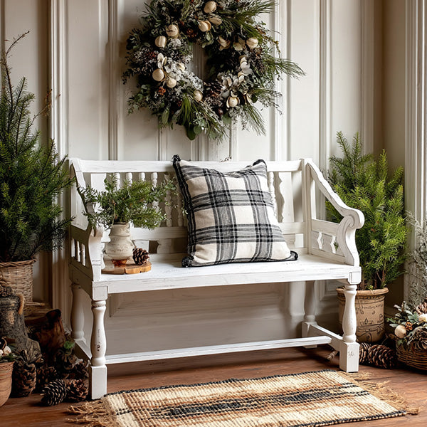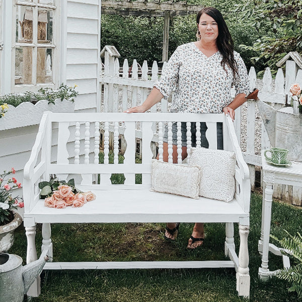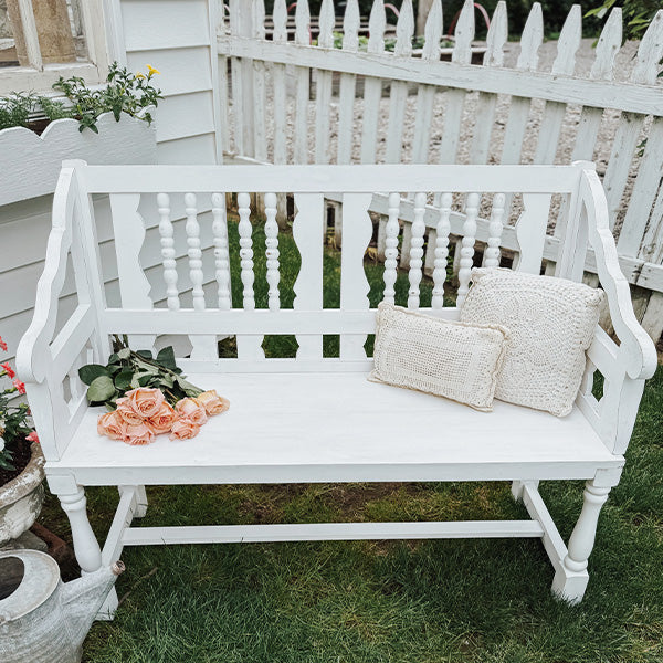 Think charming spindles, swoon-worthy curves, and that distressed modern farmhouse white finish that makes every bouquet (or throw pillow) pop. Oh, and she’s no delicate flower — this bench is outdoor-proof and strong enough to hold up to 800 lbs. Translation? She’s gorgeous and tough.