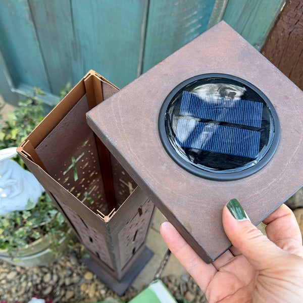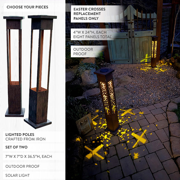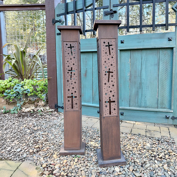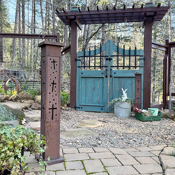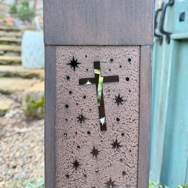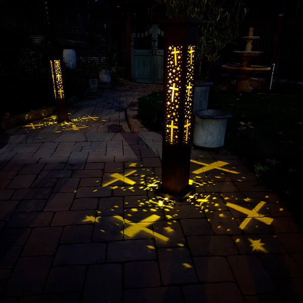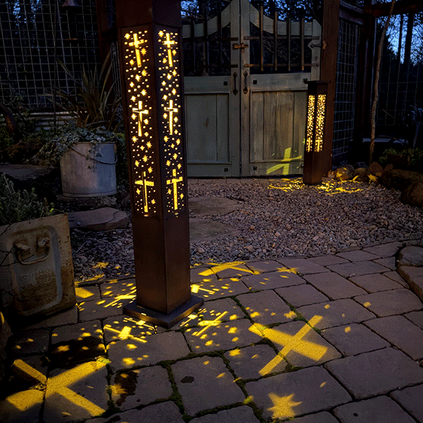 This Easter drop features cross and star cutouts that cast breathtaking shadow patterns across your patio, pathway, or garden after dark. Watch crosses and constellations dance across your stones at dusk. During the day, the weathered bronze pillar stands as a striking sculptural piece all on its own. At night? Pure, reverent magic.