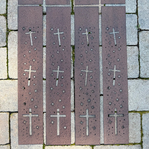 - Nighttime: crosses and stars glowing and dancing across your walkway