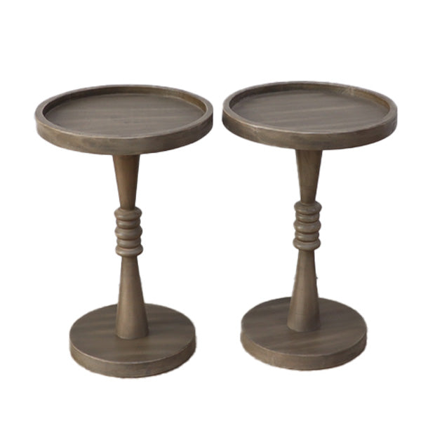 Natural Wood Round Pedestal Accent Tables, Set of 2