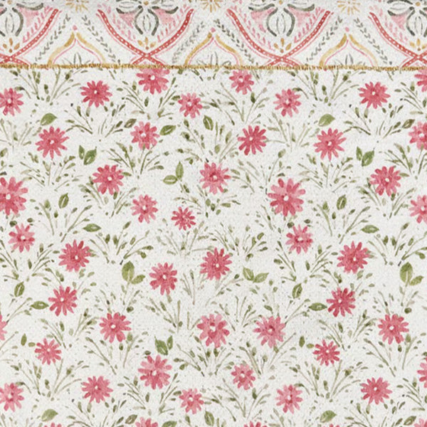 - Color/Pattern: Multicolor floral design featuring pink blooms, sage green leaves, cream background, and decorative pink and gray border detail