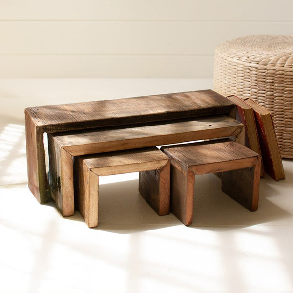 You know that feeling when everything just clicks into place? That “yes, this is perfect” moment? These Nesting Rectangular Recycled Wood Risers capture that joy, blending farmhouse charm with functional versatility. Whether you're elevating plants, creating a decorative vignette, or highlighting your favorite accents, these risers are the ultimate finishing touch.
