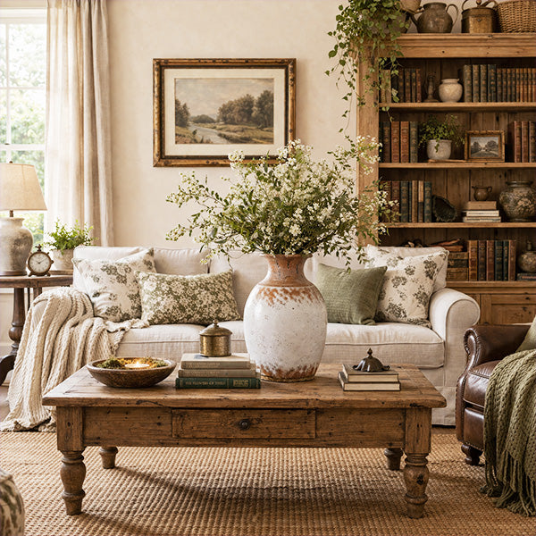 At 10.5" diameter and 14.5" tall, it's perfectly sized for console tables, mantels, or as a dining table centerpiece. The neutral color palette effortlessly complements both modern farmhouse and traditional cottage styles.