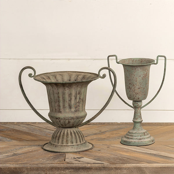 You—twice over. This set of two trophy-style vases delivers instant character with their coveted verdigris patina, each one showcasing authentic depth and natural-looking variation that catches the light beautifully. Together, they feel like heirloom pieces collected over time, not something you just unboxed today. Styled as a pair or separately, they bring that layered, storied look designers swear by.