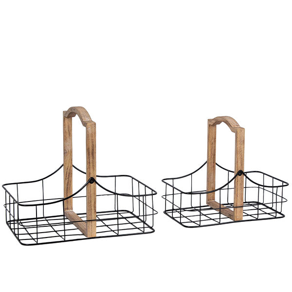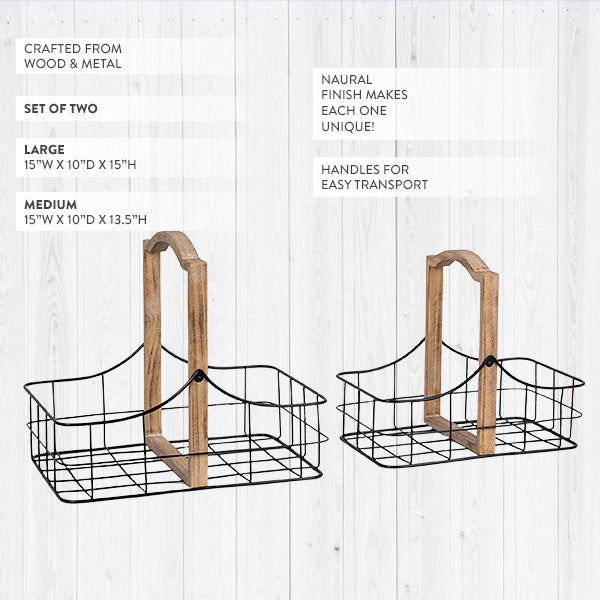 - Set of two wire storage baskets with handles for easy transport