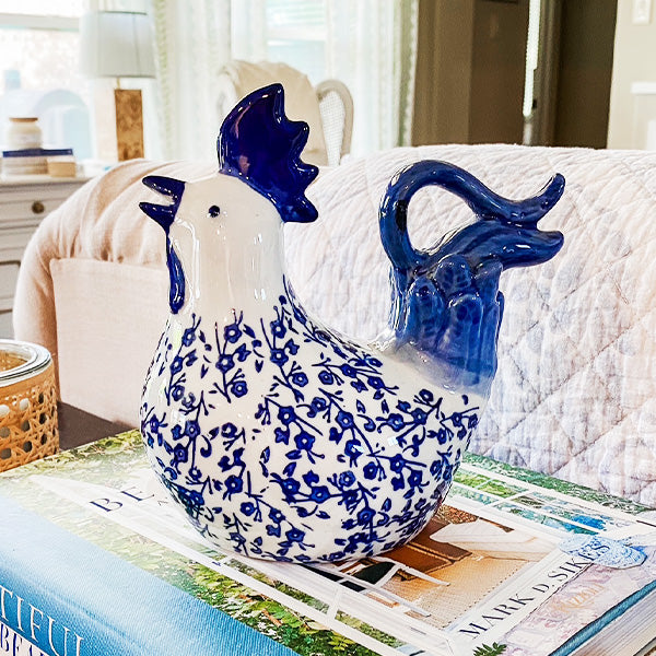 YOU GUYS! We are literally bursting with excitement over this! Get ready to fall head-over-heels for our BRAND-NEW, absolutely dreamy Blue Willow Chinoiserie Hen! It's a total showstopper and the perfect little piece to add that classic, timeless elegance we all love to any room. There's a special place in our heart for all things blue and white, and this little cutie just stole it!