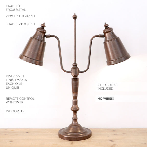 Thoughtfully designed for everyday living, the adjustable dual arms allow you to angle light exactly where you need it—perfect for reading, working, or creating a warm ambient glow in the evening. Because it’s completely cordless, you can style it anywhere without worrying about outlet placement. The included LED bulbs and built-in timer make it even easier, giving you beautiful lighting with almost zero effort.