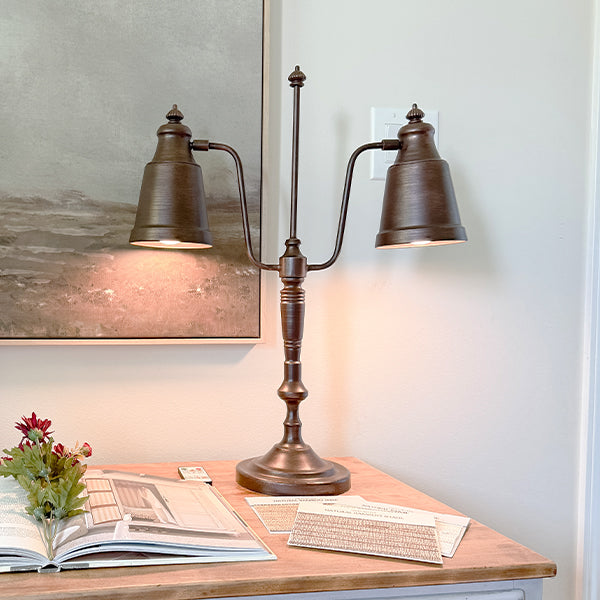 Vintage Double-Glow Brass Desk Lamp | Classic Library Charm