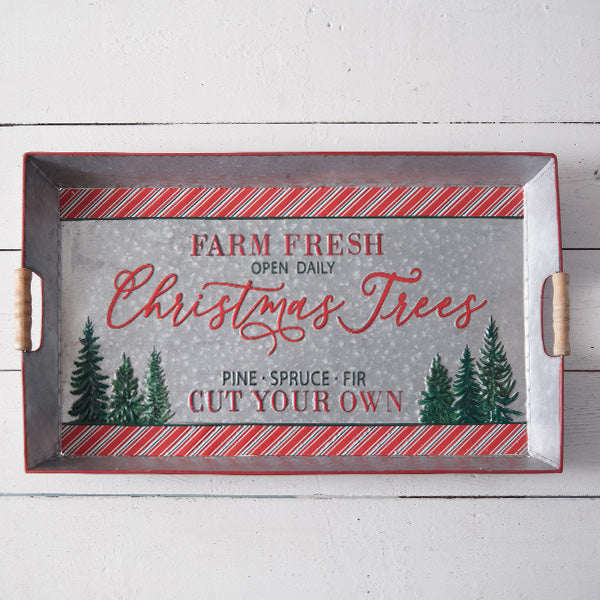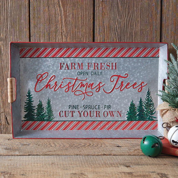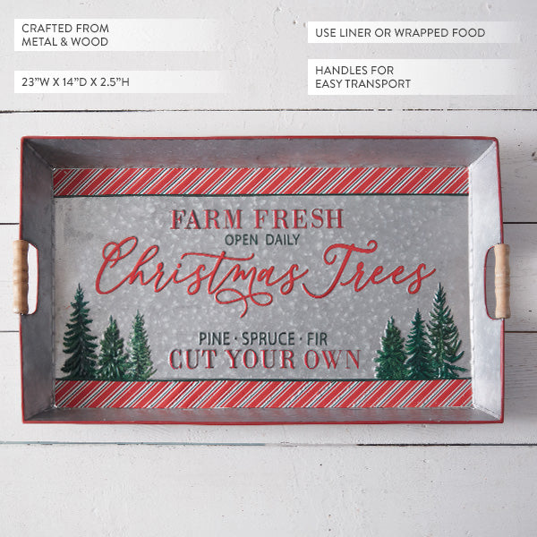 There's something magical about the moment you pick out your Christmas tree—the smell of fresh pine, the crunch of snow, that feeling of tradition. This isn't just a serving tray. It's that whole nostalgic experience captured in metal and wood.