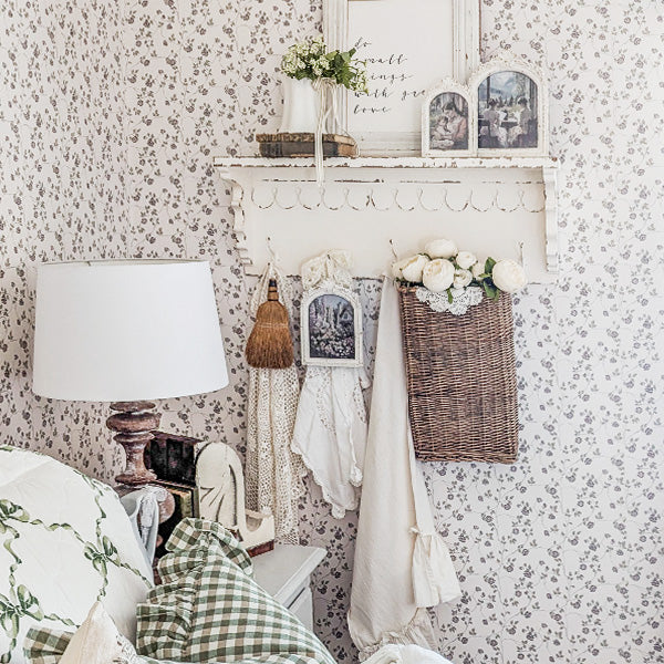 Farmhouse-Inspired Design: Ornate distressed white frames add rustic charm with vintage appeal.