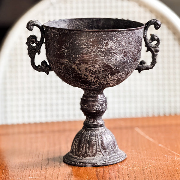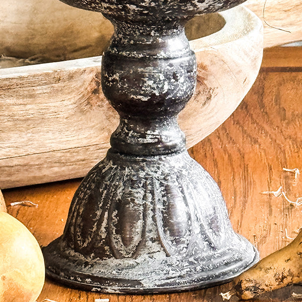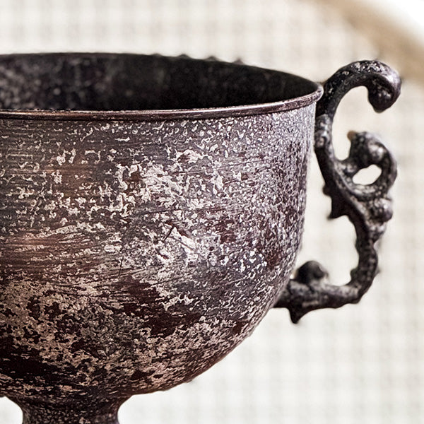 Say hello to our stunning new Rustic Pedestal Urn! This vase gives off an aura of pure vintage charm. With its beautifully distressed metal finish and classic pedestal design, it looks like a treasured heirloom you found on an antiquing trip to the French countryside. It's the perfect way to add height, texture, and a sense of history to any vignette.