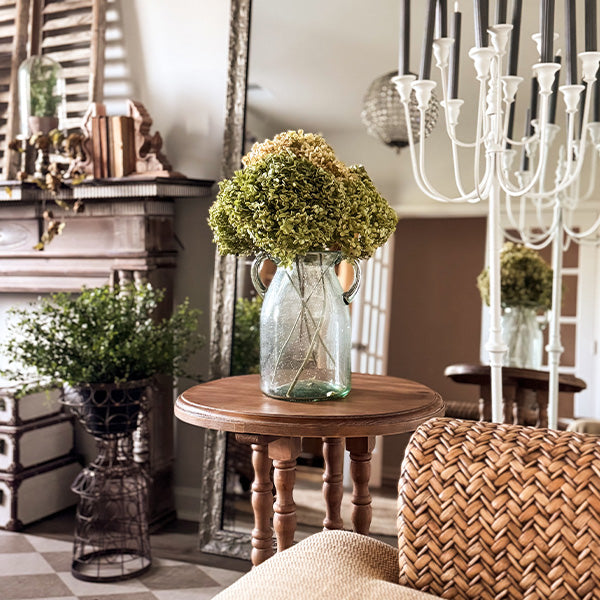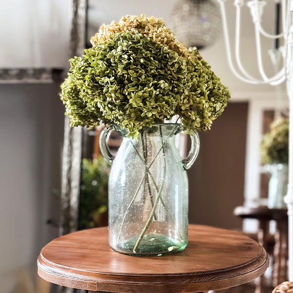 You know that feeling when you find that perfect, one-of-a-kind treasure at a flea market or antique store? This vase gives you that exact vibe, but without the hunt! With its charming double handles and beautiful, organic shape, it has a chic, ancient-meets-modern appeal. The glass has a gorgeous bubbled texture and a subtle hint of green, making it feel like it's been lovingly recycled from a vintage bottle. It's the perfect blend of rustic and refined.