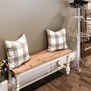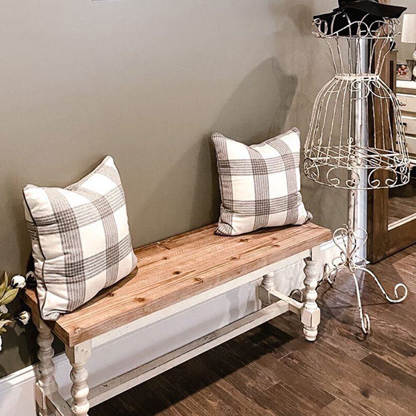 We know this white spindle bench is just what your farmhouse is missing! This beauty will make the PERFECT seat in your entryway as a place for your guests to sit while they take off their shoes! Your guests are sure to be in LOVE with it too! Style this in your entryway adorned with seasonal pillows. It will be the best spot to sit while reading your favorite book or drinking a cup of tea! Style this wooden spindle bench in your dining room or living room with blankets and throw pillows for extra seating! We love the idea of this at the foot of your bed for a place to put extra blankets! The neutral finish of this bench will blend perfectly with your home’s décor style!
