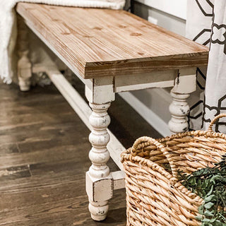 This bench is simple yet elegant and will brighten any space! This beauty won’t last long! Steal yours before it’s too late and transform your home with the timeless charm of our chippy wooden spindle bench.
