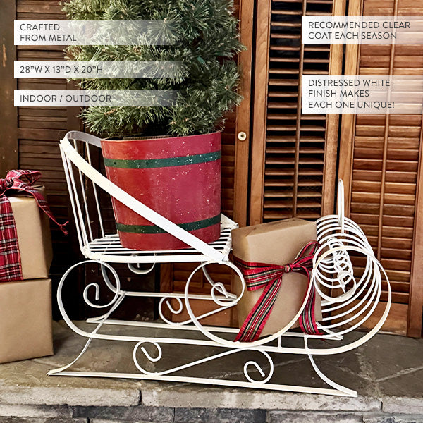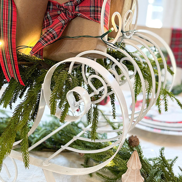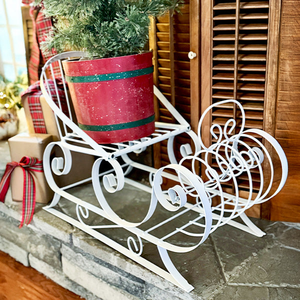 Style it your way: evergreens for a winter wonderland, metallic ornaments for glam, pine cones and fairy lights for cozy farmhouse charm, or let the sleigh shine on its own. Its open design makes it endlessly versatile and effortlessly stunning.