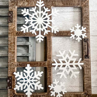 If you are looking for an EYE CATCHING statement maker this holiday season... well, look no further! Today's Snowflake Adorned Distressed Wooden Window Frame will TRANSFORM your space into a winter wonderland... in farmhouse style!
