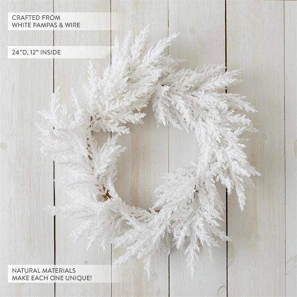 - Packed: One wreath (you will receive one white pampas grass wreath)