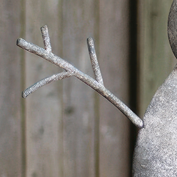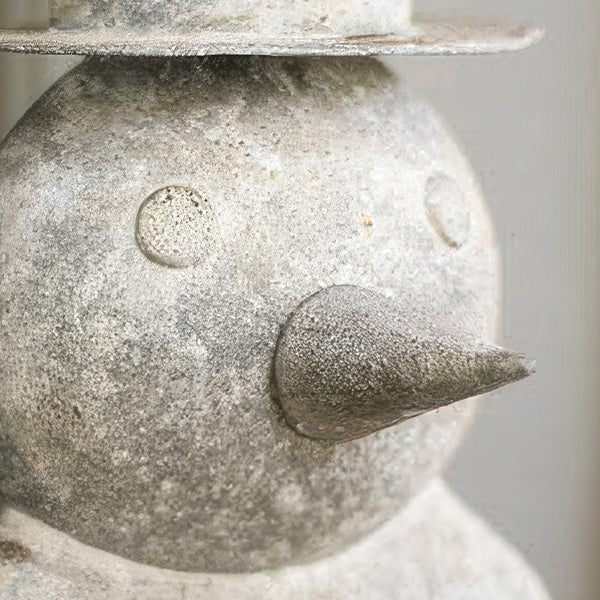 Crafted from solid metal with a beautifully distressed white-washed finish, this 40-inch beauty brings the charm of a handmade snow sculpture to your porch year after year. The weathered patina looks like he's been standing guard through decades of winter storms, each imperfection adding to his story. That galvanized bucket hat perched on his head? Pure vintage farmhouse magic. The natural twig arms reaching out in welcome? They're the kind of authentic detail you simply can't fake.