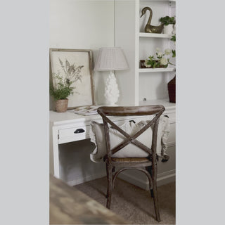 • Integrated Bookcase Storage: Built-in shelving provides ample space for books, décor, or office supplies, framed by vertical beadboard paneling for subtle texture.