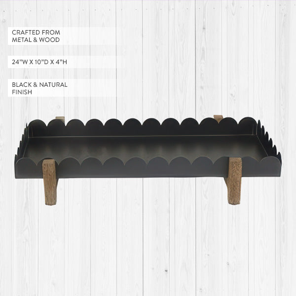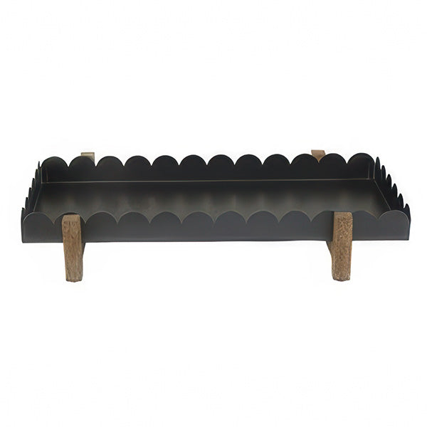 This isn't your ordinary serving tray. With its charming scalloped edges and sturdy wood legs, it elevates everything it holds—literally. Use it as a stylish riser for your morning muffins, a display platform for your favorite candles, or a catch-all for kitchen essentials.
