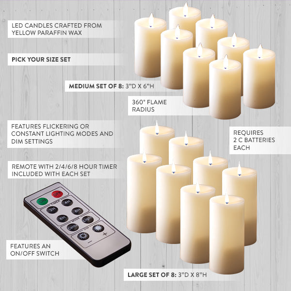 Large, Set of 2: 3" Diameter x 6" H - Packed: One Set Per Package (you will receive two LED Candles)