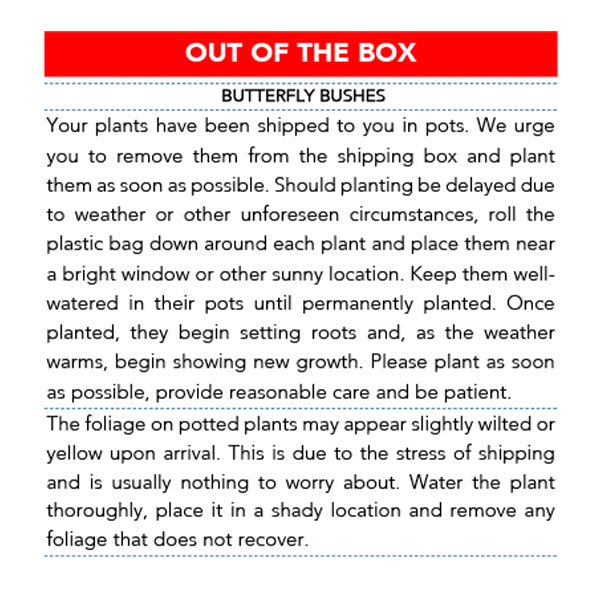 - Includes 1 buddleia honeycomb in 2.5 qt. grower pot
