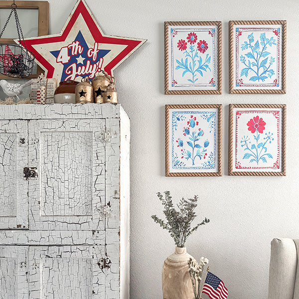Whether you're decorating for the 4th of July, Memorial Day, or simply love a red, white, and blue theme with artistic flair, this patriotic decor set brings beauty and meaning together in one stunning package.