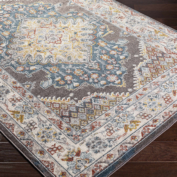 With its warm mix of cream, taupe, charcoal, gray, ice blue, and navy, this rug brings a sophisticated palette that complements both classic and modern farmhouse styles. The intricate medallion design is machine woven in 100% polypropylene, ensuring a soft yet resilient medium pile that feels cozy underfoot while standing up to everyday wear. Whether you’re dressing up your living room, anchoring your dining space, or giving your entryway a welcoming upgrade, this rug delivers charm and function in one gorgeous package.