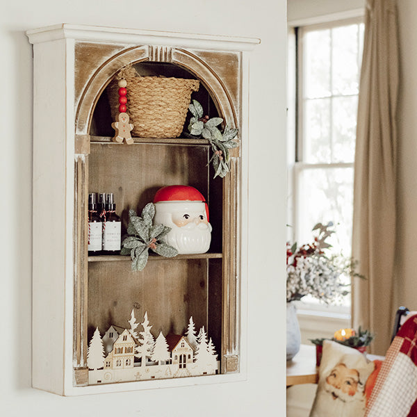 This Cottagecore Hanging Arched Cabinet is just dripping with character as unique as you and is a classic example of beauty meets function! The wooden cabinet is a perfect addition to your rustic and cozy farmhouse-themed interiors. It beautifully complements the charming and whimsical aesthetic of rustic farmhouse decor.