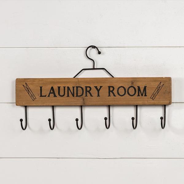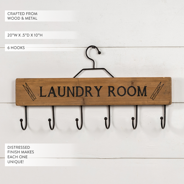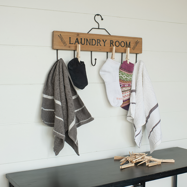 This wood wall hanger brings both function and farmhouse charm to the hardest-working room in your house. Six sturdy metal hooks hold everything from damp towels and delicate air-dry items to Christmas stockings waiting for their seasonal debut.