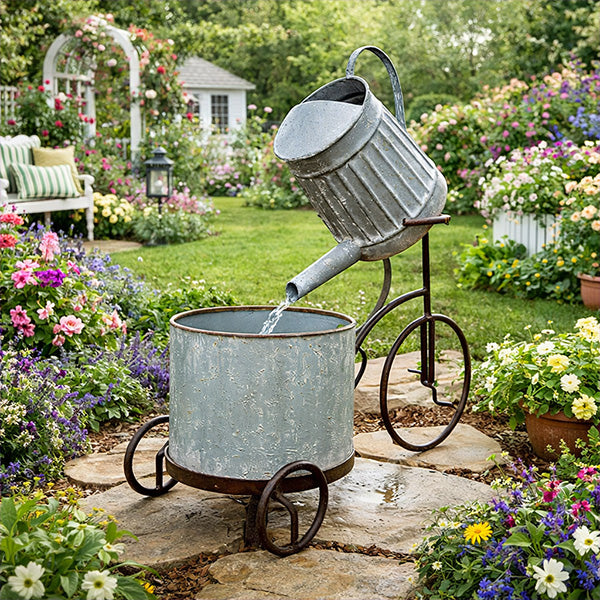 If you’ve been waiting for that one piece to wake up your outdoor space after a long winter, this Rustic Iron Bicycle Metal Fountain is it. Fresh air, blooming flowers, longer evenings — and the soft sound of water gently pouring from a charming watering can into the planter below. It’s the kind of detail that makes your porch feel alive again.