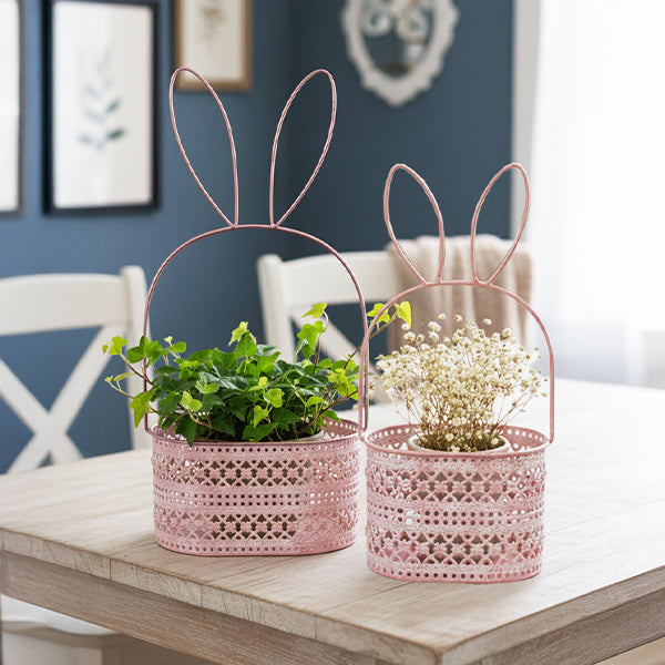 Freshen up your space with a playful nod to spring—no waiting for Easter required. These Metal Bunny Ear Baskets bring a lighthearted, charming accent that works beautifully well beyond the holiday season. With intricate cutout metalwork and a soft pastel pink finish, they add just the right amount of whimsy to brighten shelves, entry tables, or kitchen counters as you ease into a new year of decorating.