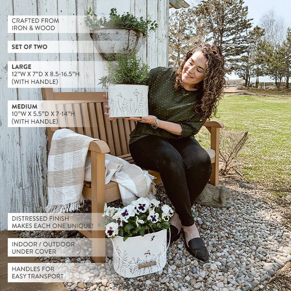 Medium: 10"W x 5.5"D x 7-14"H (with handle) - Packed: One Set per package (you will receive two buckets)