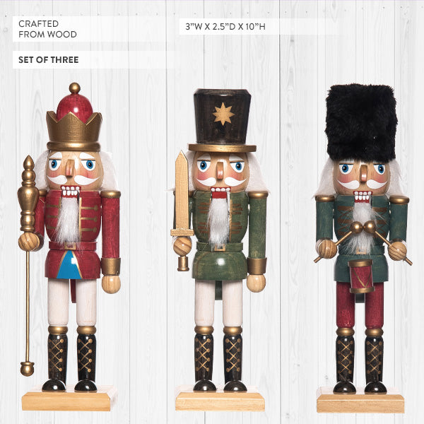 - Packed: One set per package (you will receive three wooden nutcrackers - king, drummer, and soldier)