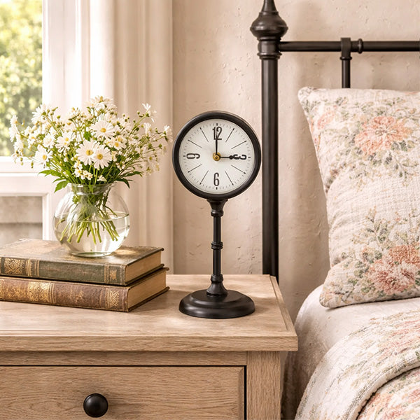 Some desk clocks scream "corporate office supply catalog." This one whispers "I was discovered at a French flea market" (even though it's brand new). The turned pedestal design looks like it belongs in a vintage apothecary or an architect's study circa 1940. That matte black finish? Zero shine, all sophistication. At just under 12 inches tall, it commands presence without hogging desk real estate.