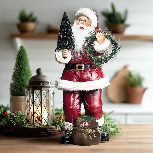 Traditional 16-Inch Santa Figurine with Bottle Brush Tree