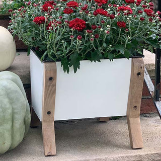 - Beautifully crafted from enamel inspired metal with wooden legs