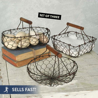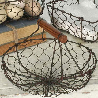 The vintage-inspired look of our Vintage-Inspired Gathering Baskets brings rustic appeal along with being a practical storage solution for your home. Crafted of wire with wooden handles, these decorative metal gathering baskets will add a sweet simple touch to your home’s décor.