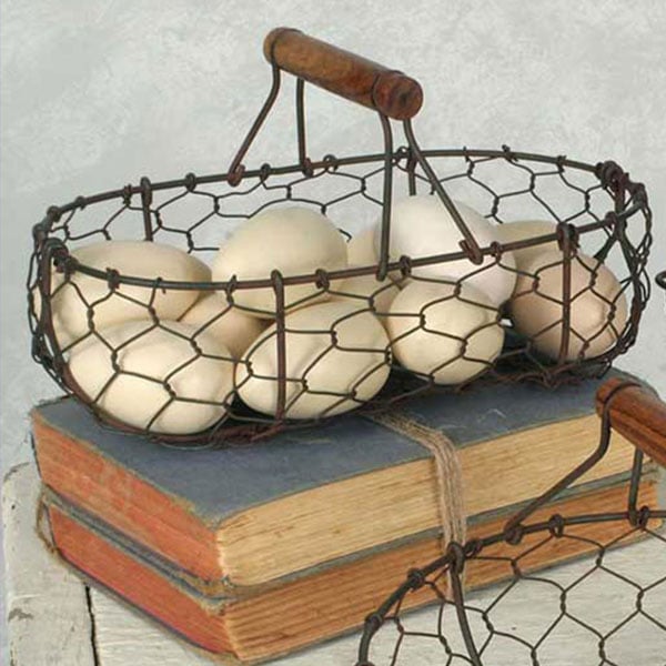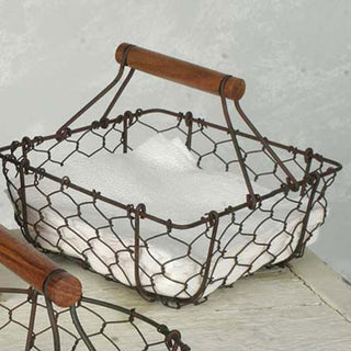 - Beautifully crafted of metal wire with wood handles