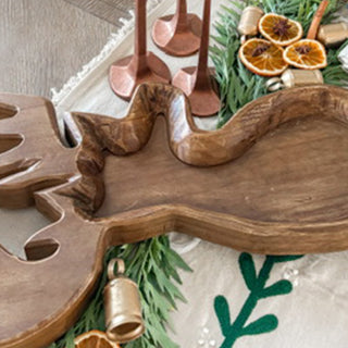 Create a warm, inviting atmosphere with the 22-Inch Reindeer Wooden Dough Bowl, blending festive style and practicality. Whether showcasing seasonal decor or offering holiday treats, it’s a timeless piece that enhances the joy of the season.