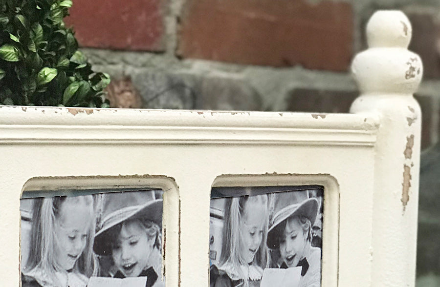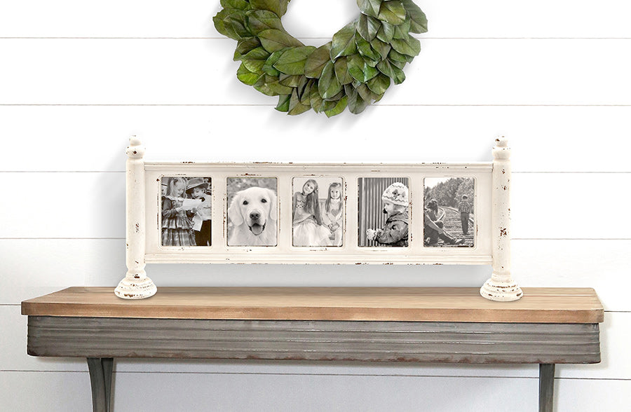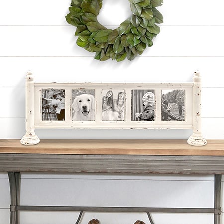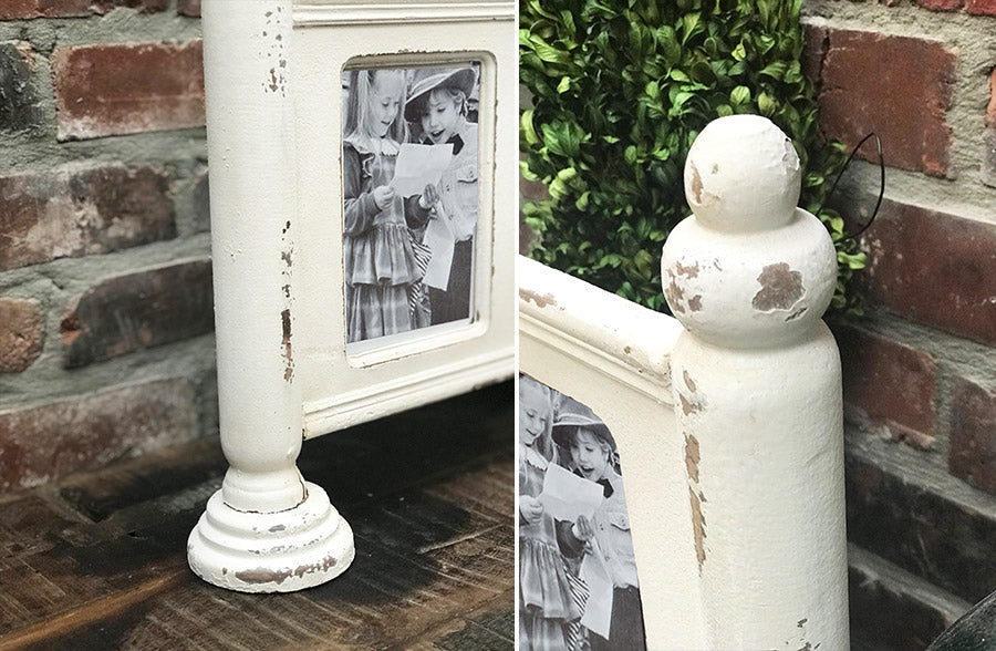 Sigh... Use this vintage inspired wooden frame to showcase your family photos in a unique and creative way! Oh! And we LOVE the chippy white paint details!
