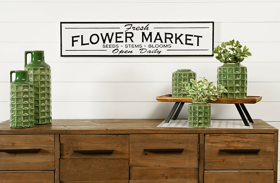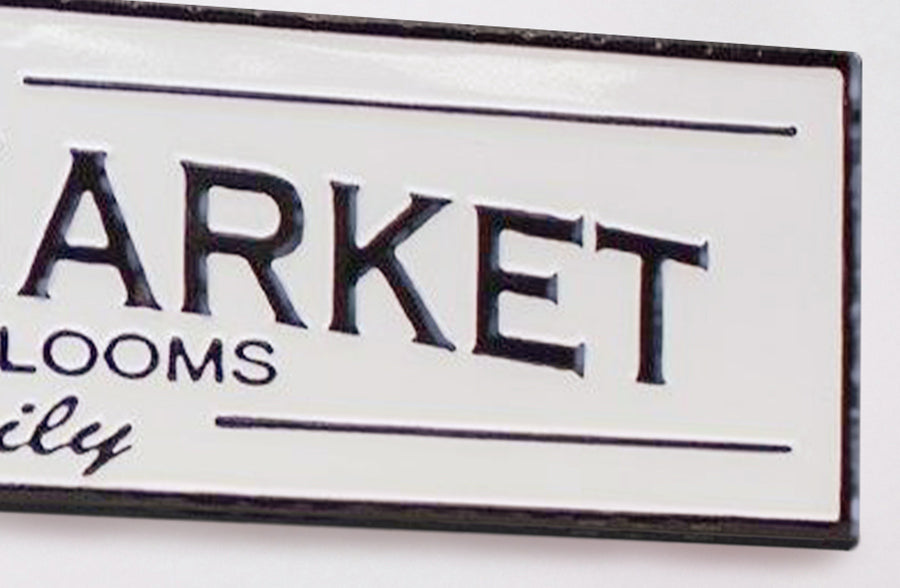 This truly is the most PERFECT accent piece to add to your space! This vintage-inspired metal flower market sign has it ALL! A beautifully distressed metal finish, embossed lettering and SO MUCH farmhouse charm! This piece will blend perfectly with ANY décor style in your home. Hang this on ANY empty wall to make a statement. Use this flower market sign on your front porch, back porch, near your garden, living room, or kitchen even! Best of all you get this AHHHMAZING sign at an unbeatable price!