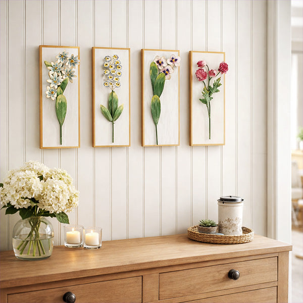 Flat prints are fine. But these? These are the kind of statement pieces that make people stop and ask where you found them. Four hand-sculpted botanical panels with actual depth and texture—not just another printed flower poster.