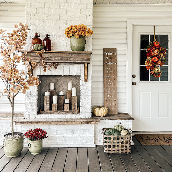 Set the tone for a welcoming and fun entryway with our 47-Inch Porch Rules Sign, a charming addition to your fall porch decor. Featuring playful and heartfelt rules, this sign brings a touch of warmth and personality to your outdoor space, reminding everyone to relax and enjoy the season.