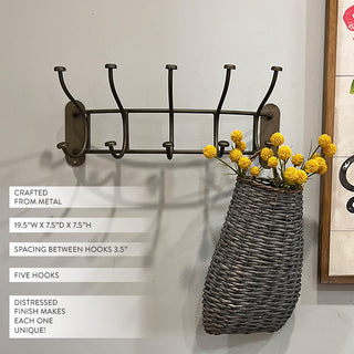 Who says organization has to be boring? The Curved Metal 5-Hook Wall Rack brings a touch of vintage charm while keeping your essentials stylishly in place. With its gracefully curved hooks and antique-inspired metal finish, this rack is as much a statement piece as it is a storage solution. Perfect for hanging coats, bags, hats, or even decorative accents, it blends seamlessly into midcentury, farmhouse, industrial, or rustic decor styles.